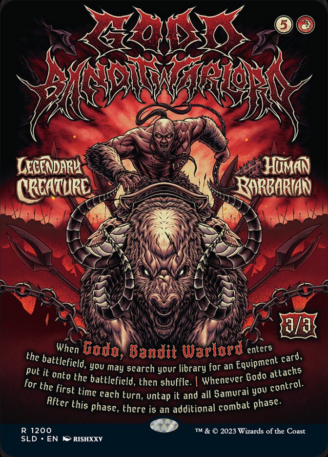 When Godo enters, you may search your library for an Equipment card, put it onto the battlefield, then shuffle.