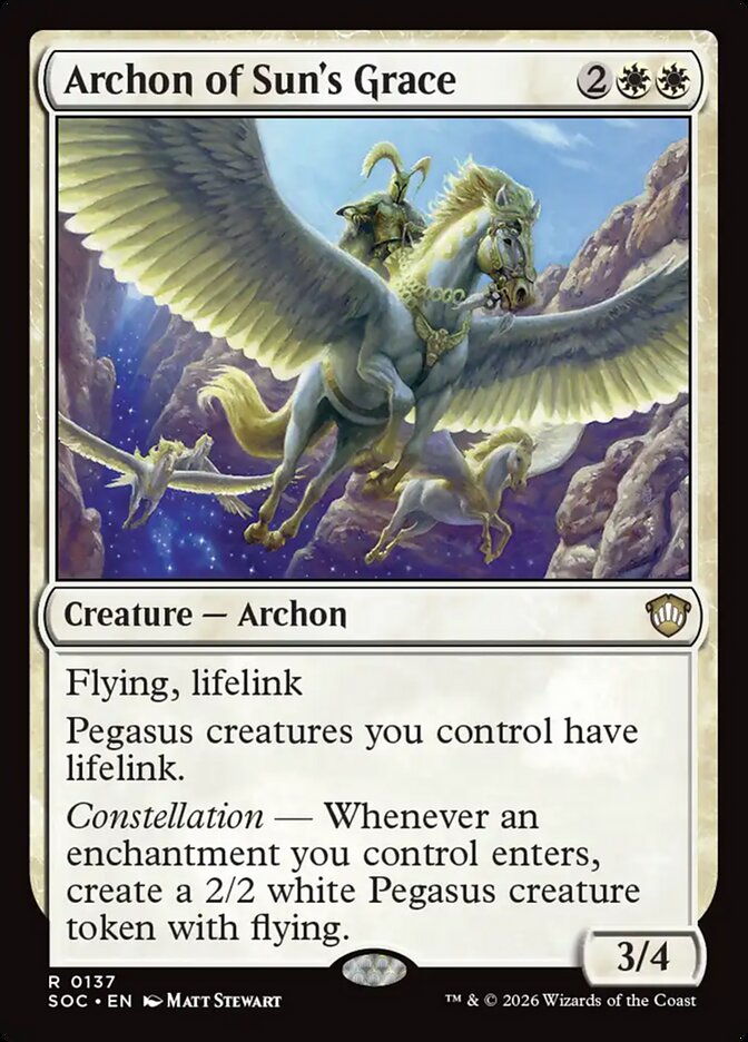 Constellation — Whenever an enchantment you control enters, create a 2/2 white Pegasus creature token with flying.