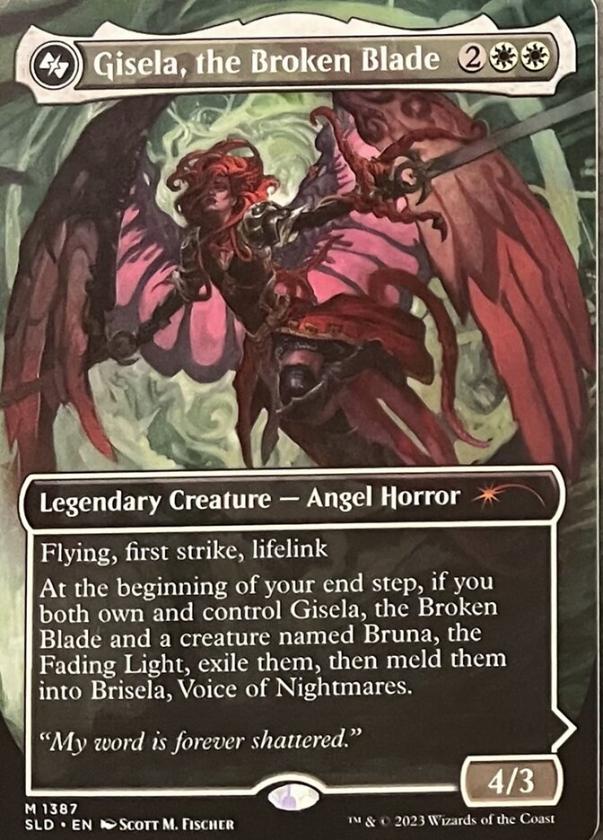 At the beginning of your end step, if you both own and control Gisela and a creature named Bruna, the Fading Light, exile them, then meld them into Brisela, Voice of Nightmares.