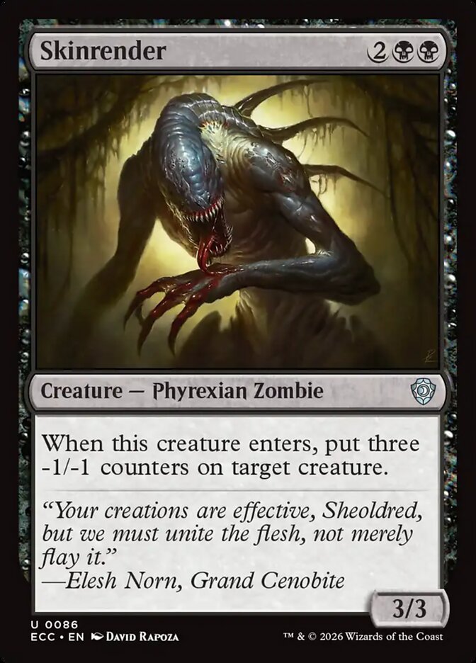 When this creature enters, put three -1/-1 counters on target creature.