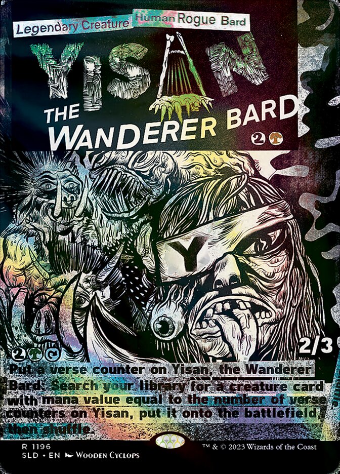 , Put a verse counter on Yisan: Search your library for a creature card with mana value equal to the number of verse counters on Yisan, put it onto the battlefield, then shuffle.