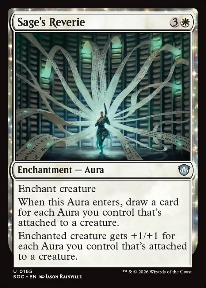 When this Aura enters, draw a card for each Aura you control that's attached to a creature.