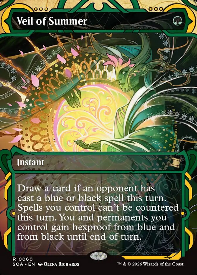 Draw a card if an opponent has cast a blue or black spell this turn. Spells you control can't be countered this turn. You and permanents you control gain hexproof from blue and from black until end of turn. (You and they can't be the targets of blue or black spells or abilities your opponents control.)