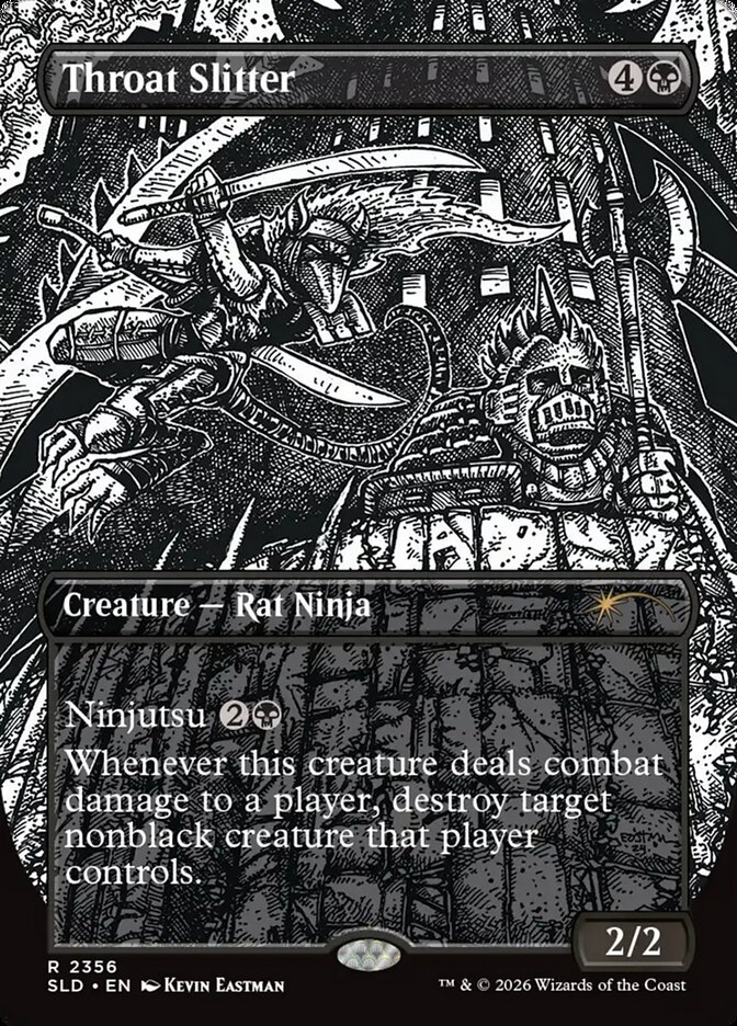 Whenever this creature deals combat damage to a player, destroy target nonblack creature that player controls.