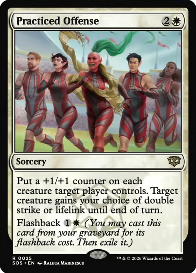 Put a +1/+1 counter on each creature target player controls. Target creature gains your choice of double strike or lifelink until end of turn.