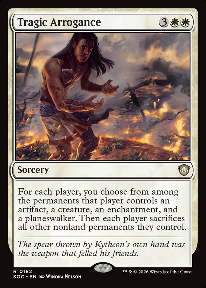 For each player, you choose from among the permanents that player controls an artifact, a creature, an enchantment, and a planeswalker. Then each player sacrifices all other nonland permanents they control.