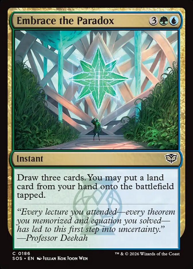 Draw three cards. You may put a land card from your hand onto the battlefield tapped.