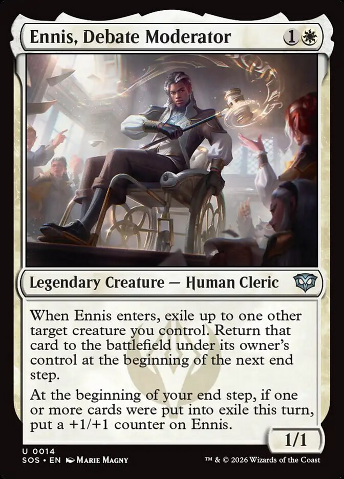 When Ennis enters, exile up to one other target creature you control. Return that card to the battlefield under its owner's control at the beginning of the next end step.