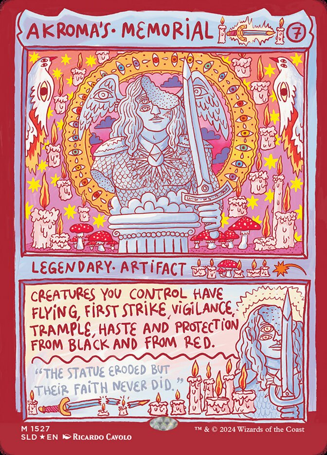 Creatures you control have flying, first strike, vigilance, trample, haste, and protection from black and from red.